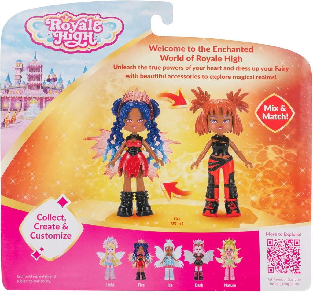 Royale High Core Deluxe Figure - 3” FIRE FAIRY Fashion Doll - 1 Figure with 9 Fashion Accessories - Virtual Item Code Included - Series 1 - on clearance